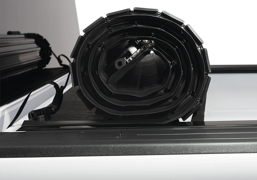The Revolver X2 hard rolling truck bed cover features exclusive automatic rotational locking rails that secure the cover the entire length of the bed on each side. This hard aluminum roll-up cover easily rolls up with one-handed operation and allows use of every inch of the truck bed without blocking your rear window. This cover does it all with unrivaled strength, security and style.