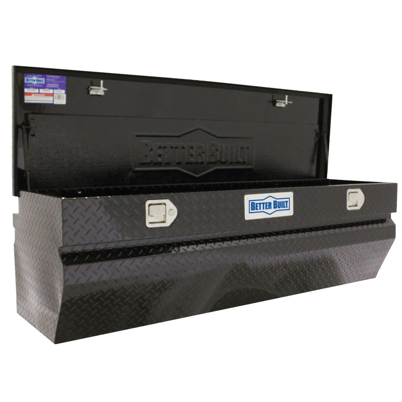 Maximize your visibility. This BETTER BUILT® Chest Truck Tool Box sits below the bed rails, making it compatible with tonneau covers. The chest features easy-to-use paddle handles that provide security for your items. The offset hinge allows your lid to open nearly 90 degrees, even while sitting flush against your truck cab. Use this box in your truck or for household storage to make it convenient to transfer items. The full seal weather stripping helps prevent elements from getting into the truck box and the self-adjusting strikers are guided to their latch every time to provide a secure closure. The self-rising gas springs allow easy single handed entry to the box. The durable powder coat finish adds additional protection to the box. This box is backed by a 1 year limited warranty.