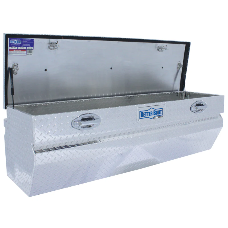 Maximize your visibility. This BETTER BUILT® Chest Truck Tool Box sits below the bed rails, making it compatible with tonneau covers. The chest comes with industry exclusive locking pull handles that allow you to lock or unlock your box from either side of the truck. The two-stage automotive grade rotary latches improve precision, functionality, and security for the truck box. The full seal weather stripping helps prevent elements from getting into the truck box and the self-adjusting strikers are guided to their latch every time to provide a secure closure. The self-rising gas springs allow easy single handed entry to the box. The offset hinge allows your lid to open nearly 90 degrees, even while sitting flush against your truck cab. Use this box in your truck or for household storage to make it convenient to transfer items. This box is backed by a 1 year limited warranty.
