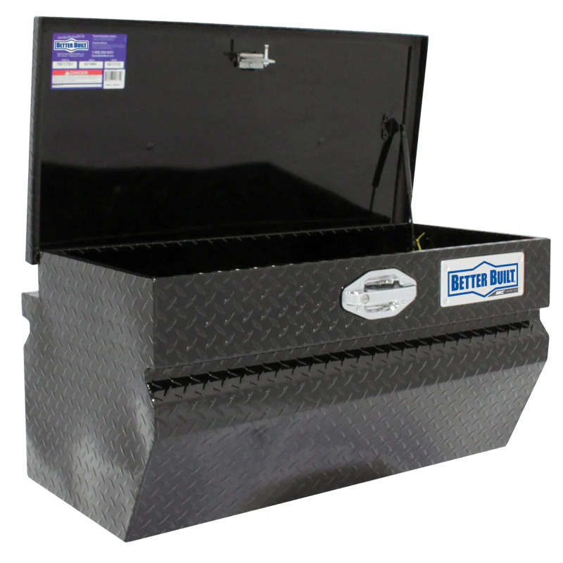 Maximize your visibility. This BETTER BUILT® Chest Truck Tool Box sits below the bed rails, making it compatible with tonneau covers. The chest comes with industry exclusive locking pull handles that allow you to lock or unlock your box from either side of the truck. The two-stage automotive grade rotary latches improve precision, functionality, and security for the truck box. The full seal weather stripping helps prevent elements from getting into the truck box and the self-adjusting strikers are guided to their latch every time to provide a secure closure. The self-rising gas springs allow easy single handed entry to the box. The offset hinge allows your lid to open nearly 90 degrees, even while sitting flush against your truck cab. Use this box in your truck or for household storage to make it convenient to transfer items. The durable powder coat finish adds additional protection to the box. This box is backed by a 1 year limited warranty.