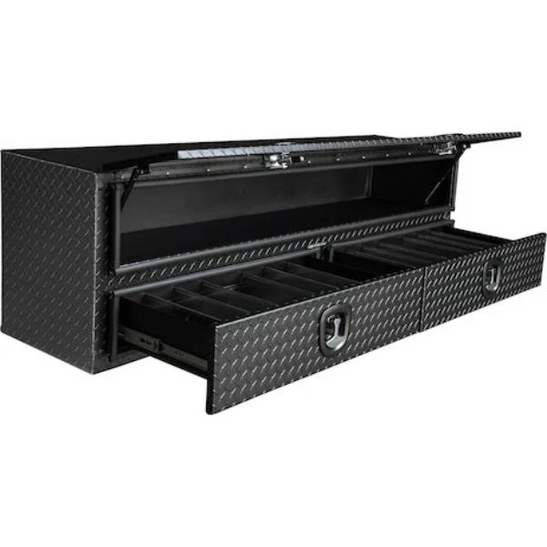 Buyers Products 72 Inch Matte Black Diamond Tread Aluminum Contractor Top Mount Truck Box With Drawers 1722678